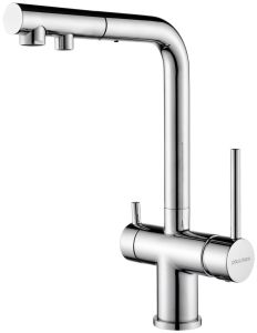 Смеситель для кухни с выдвижным изливом и возможностью подключения фильтра питьевой воды, артикул Se213222-CRИзготовлен из высококачественной латуни, которая отвечает высочайшим европейским стандартам качества, не содержит свинца, не разрушается со временем и безопасна для здоровья.Смеситель для кухонной мойки SERPENTINE изготовлен из высококачественной латуни в классическом дизайне с изливом Г-образной формы. Излив поворотный на 180. Высота излива – 330 мм.