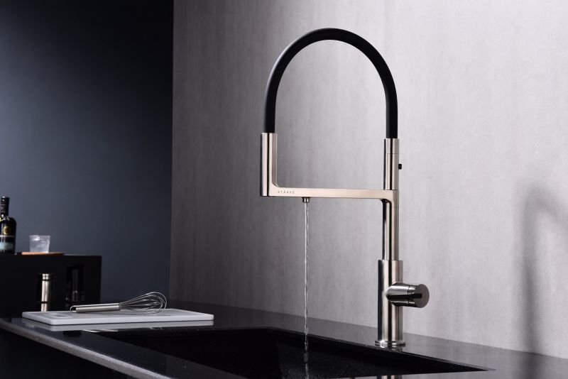 Смеситель для кухни, с гибким изливом, артикул To213402-NIИзготовлен из высококачественной латуни, которая отвечает высочайшим европейским стандартам качества, не содержит свинца, не разрушается со временем и безопасна для здоровья.Гибкая подводка 40 см;