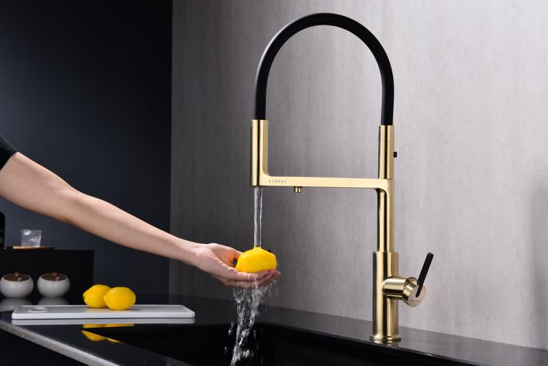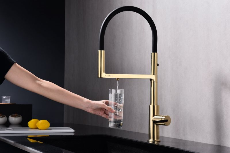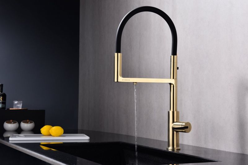 Смеситель для кухни, с гибким изливом, артикул To213402-SBGИзготовлен из высококачественной латуни, которая отвечает высочайшим европейским стандартам качества, не содержит свинца, не разрушается со временем и безопасна для здоровья.Гибкая подводка 40 см;