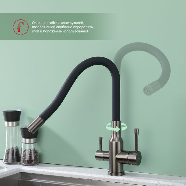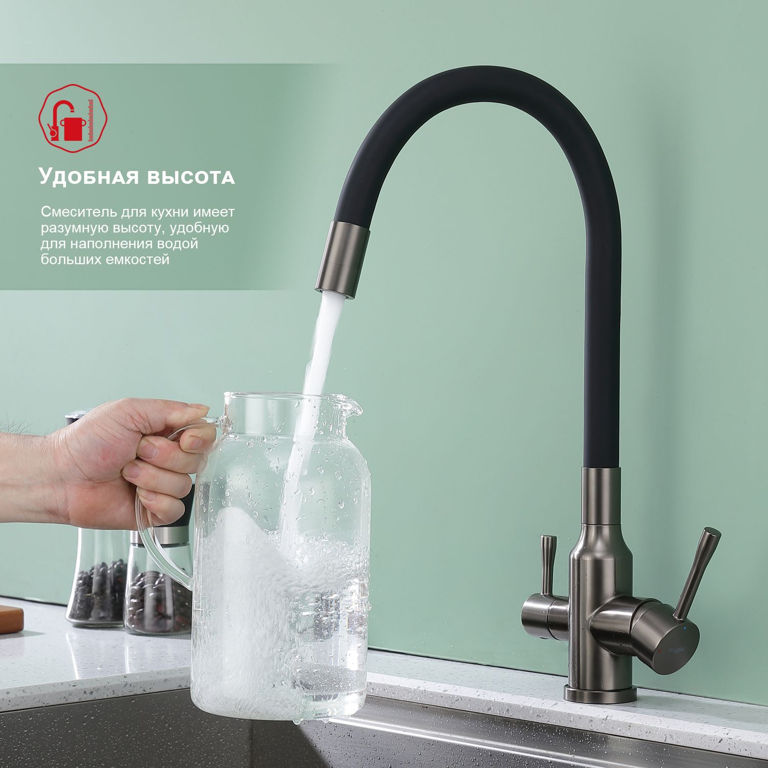 Смеситель для кухни Raglo R81.64.09 с подключением фильтра графит купить