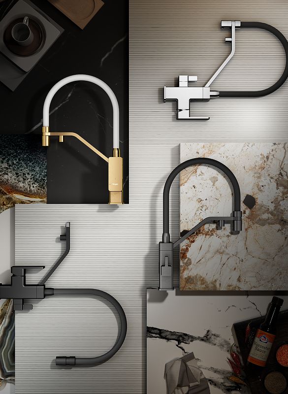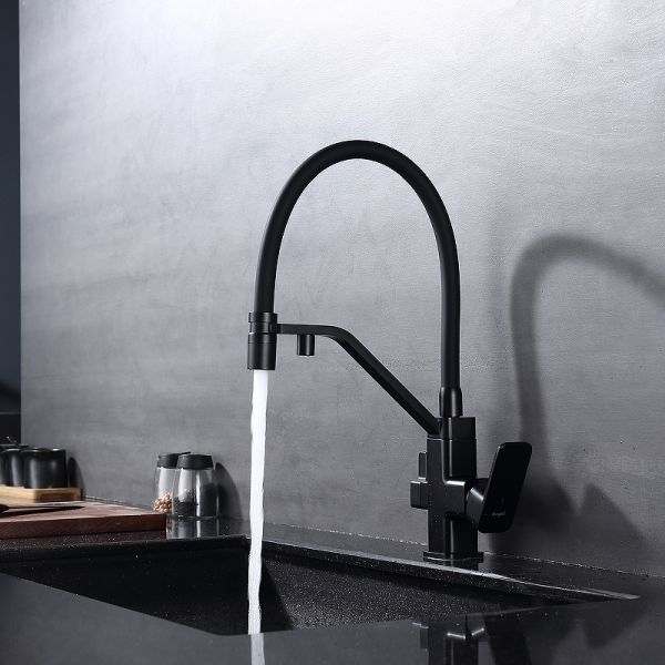 Смеситель для кухни с подключением к фильтру питьевой воды. Гибкий съемный шланг значительно расширяет зону использования смесителя, благодаря этому можно мыть объемную посуду. Модель предназначена для одновременного подключения к водопроводу и фильтру и позволяет снабжать как обычной, так и питьевой водой.