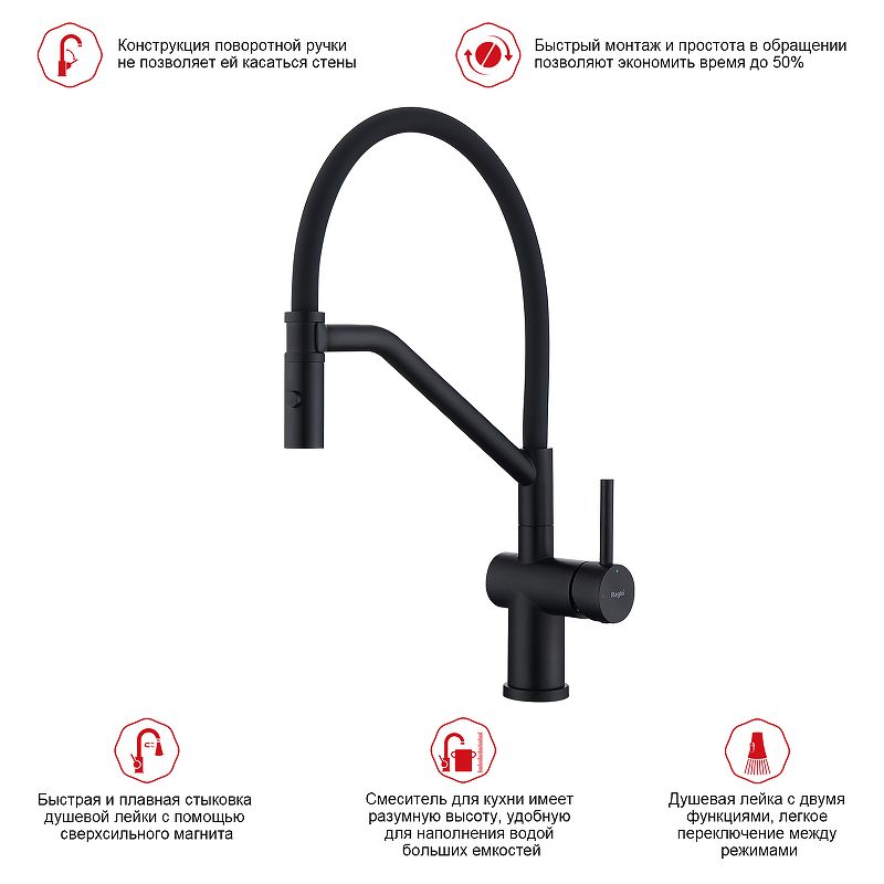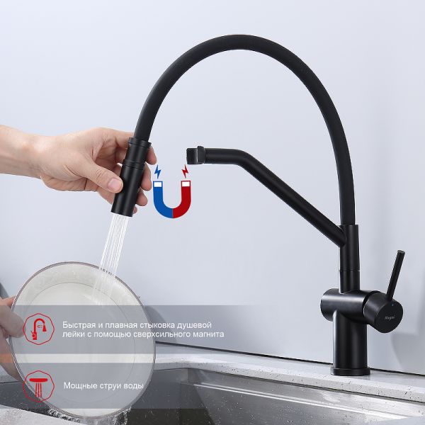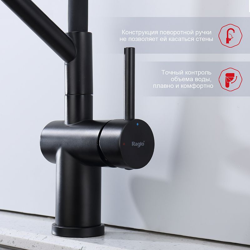 Смеситель для кухни Raglo R86.41.06 со съемным изливом на магните чёрный