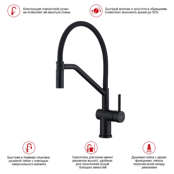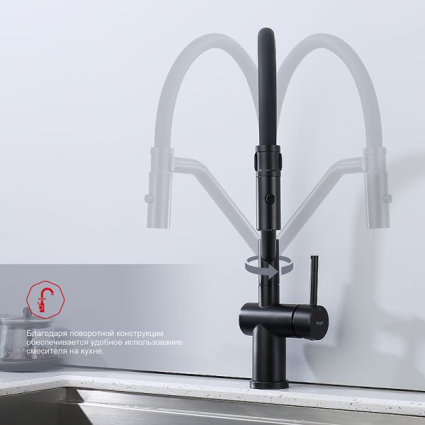 Смеситель для кухни Raglo R86.41.06 со съемным изливом на магните чёрный купить