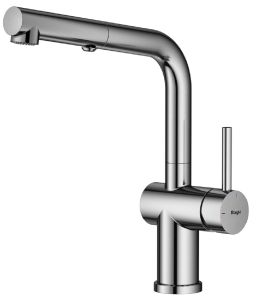 Смеситель для кухни с выдвижным изливом. Кухонные смесители торговой марки RAGLO – это оригинальность и уют для каждого дома. Кран выполнен из высококачественных материалов, что гарантирует его долговечность и надежность. Эта сантехника отличается полезным функционалом, экологичными решениями, оригинальным стилем и легкостью монтажа. Поворотный излив позволяет с большим удобством пользоваться им на кухне. Оснащен гибкой системой подключения, что облегчает его монтаж и установку. Встроенный аэратор эффективно фильтрует примеси и уменьшает шум от импульсов воды. Гладкая внутренняя стенка обеспечивает мягкий поток воды. Высококлассная технология делает поверхность яркой и блестящей. Подходит к кухонным мойкам практически любых размеров и форм.