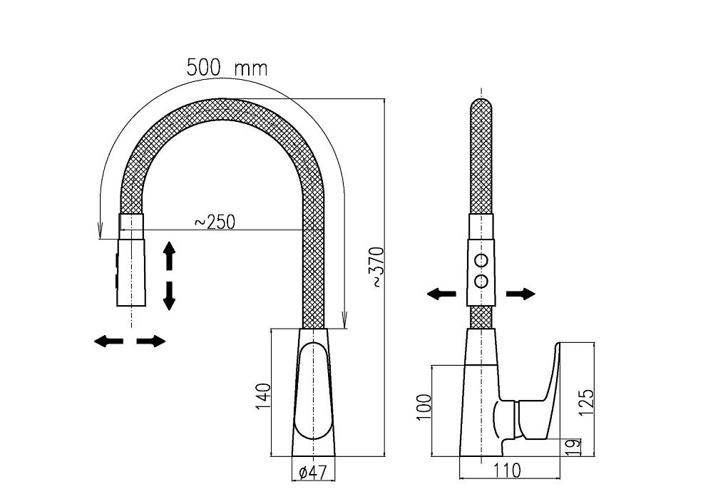 • Гибкий излив: