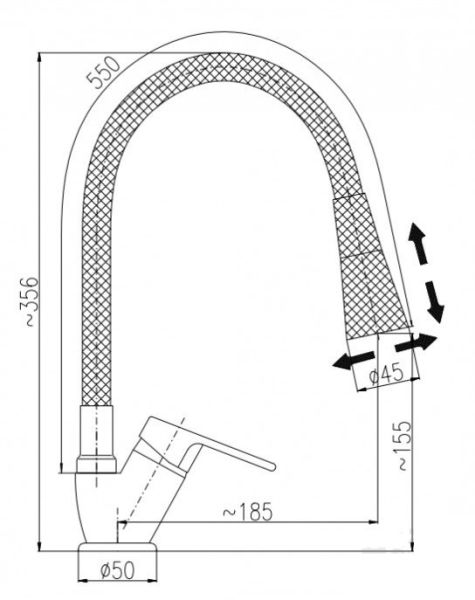 • Гибкий излив: