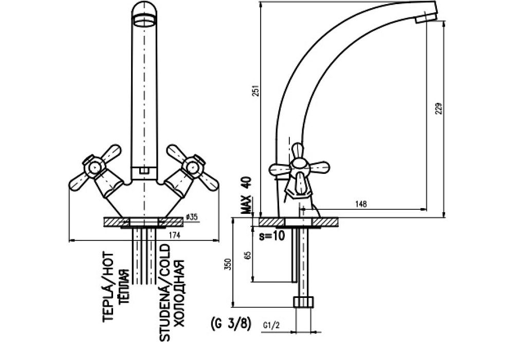 Смеситель для кухни Rav Slezak Morava Retro MK320.5/3CMATSM черный бронза