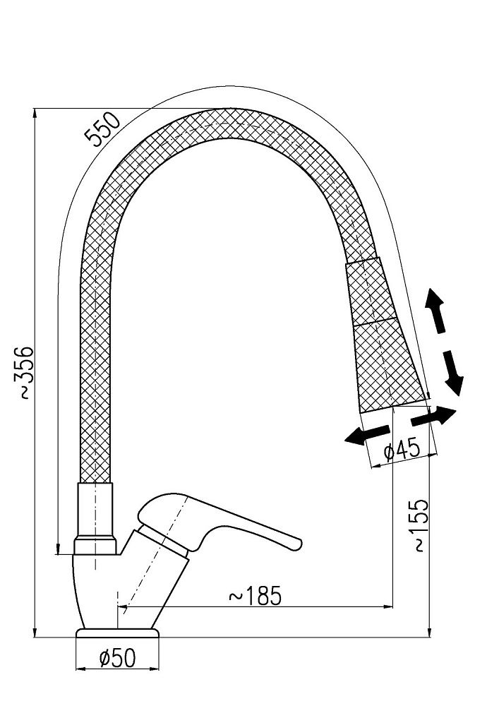 • Гибкий излив: