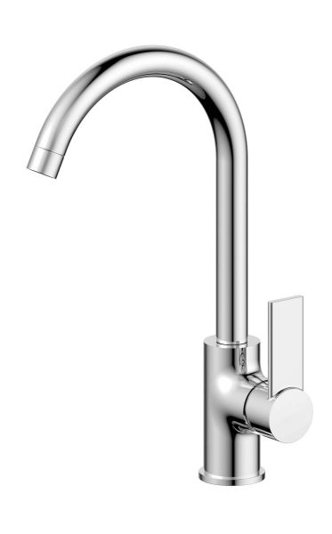 Стильный и лаконичный однорычажный смеситель для кухни с высоким поворотным изливом.