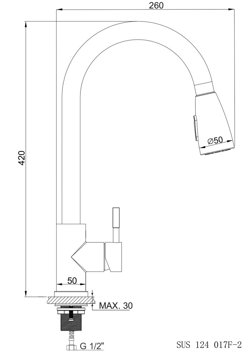 Смеситель для кухни РМС SUS124-017F-2 нержавеющая сталь