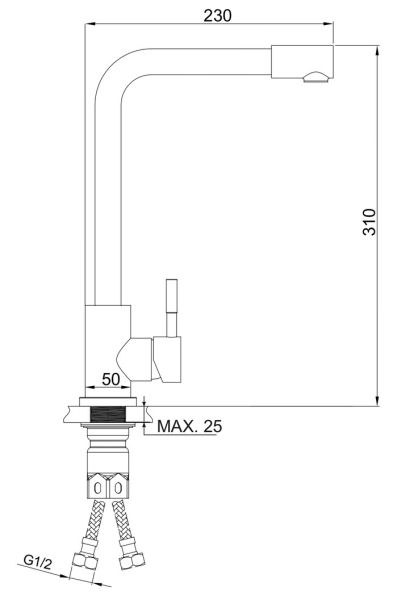 • Высота смесителя: