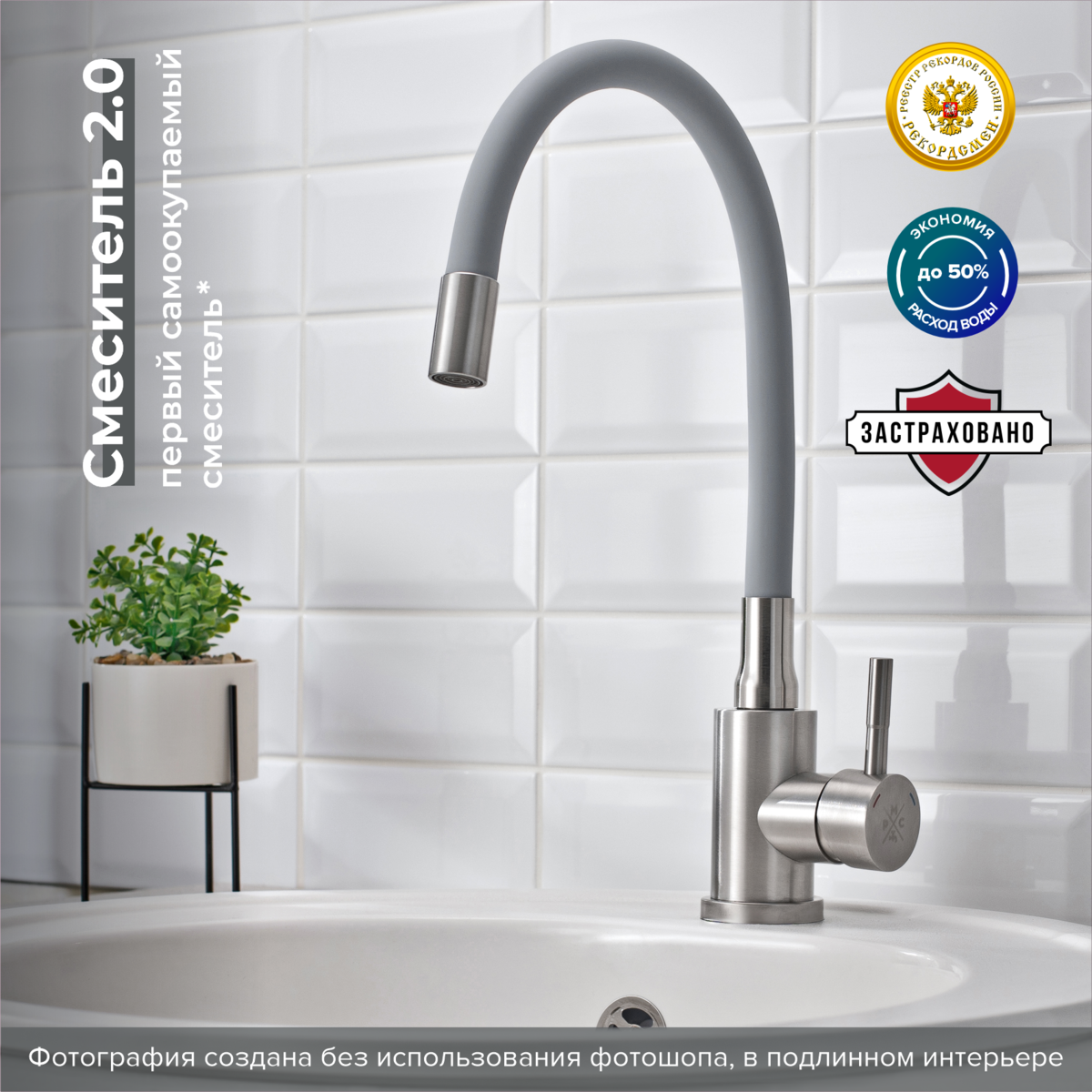 Смеситель для кухни с высоким гибким изливом