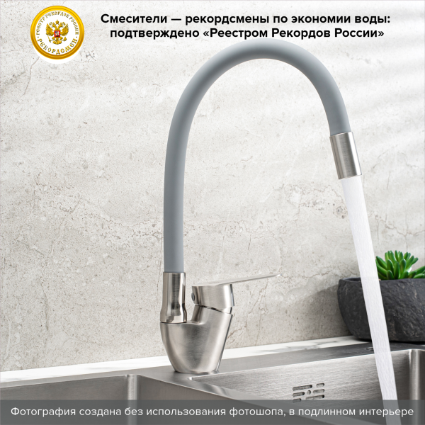 Смеситель для кухни РМС SUS126GY-016F нержавеющая сталь