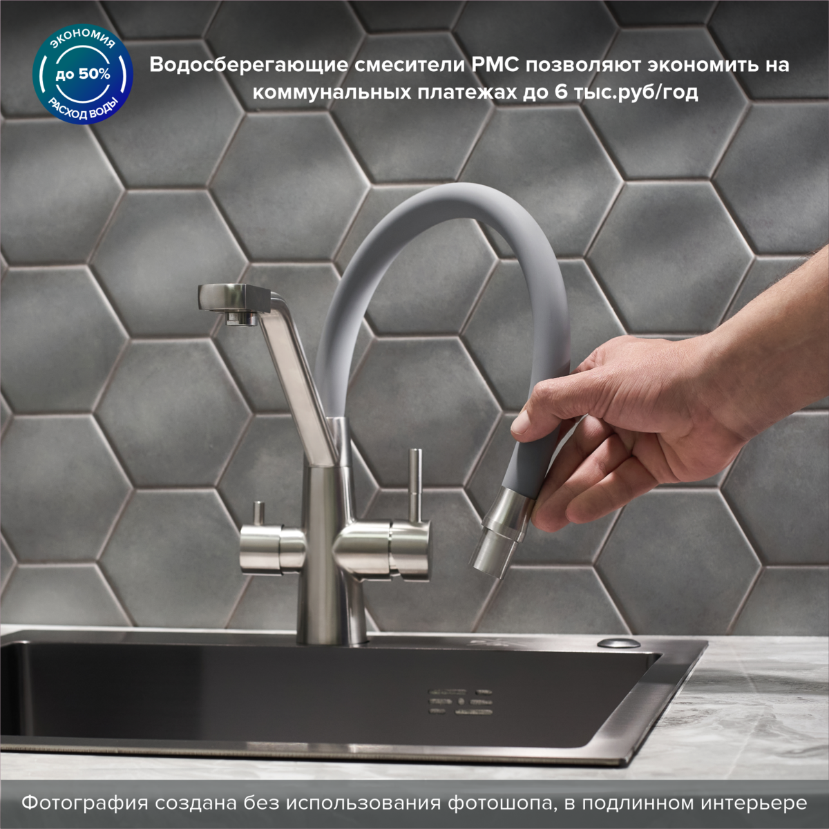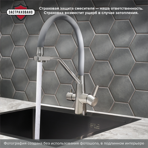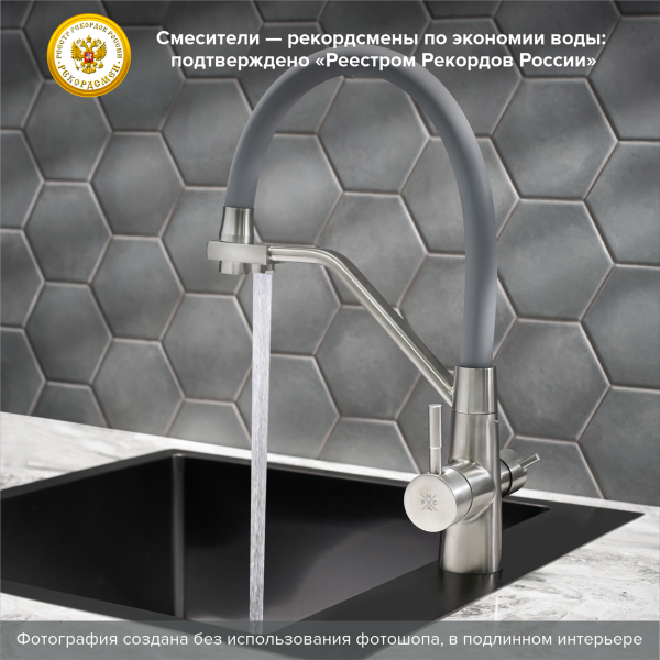 Смеситель для кухни РМС SUS127GY-016F-015 с подключением фильтра нержавеющая сталь
