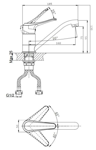 Длина излива, см:16
