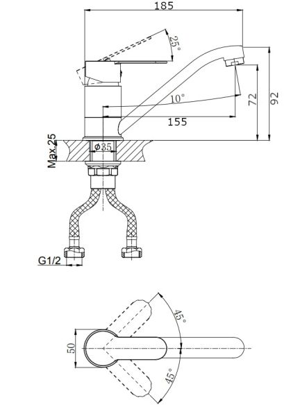 Смеситель для кухни RUSH арт. TE2835-25 с поворотным изливом с металлической ручкой из коллекции Tenerife изготовлен из высококачественной латуни и имеет рычажное управление. В смеситель установлен картридж D-35 с керамическими пластинами. Высота смесителя 92 мм. Излив поворотный 155 мм. Высота излива до аэратора 72 мм. Аэратор изготовлен из пластика с нержавеющим корпусом, угол наклона - 10 гр. В комплекте универсальная присоединительная группа для установки на горизонтальную поверхность, гибкая подводка с латунными гайками 40 см - 2шт, фум-лента, индивидуальный пакет, паспорт, гарантийный талон.