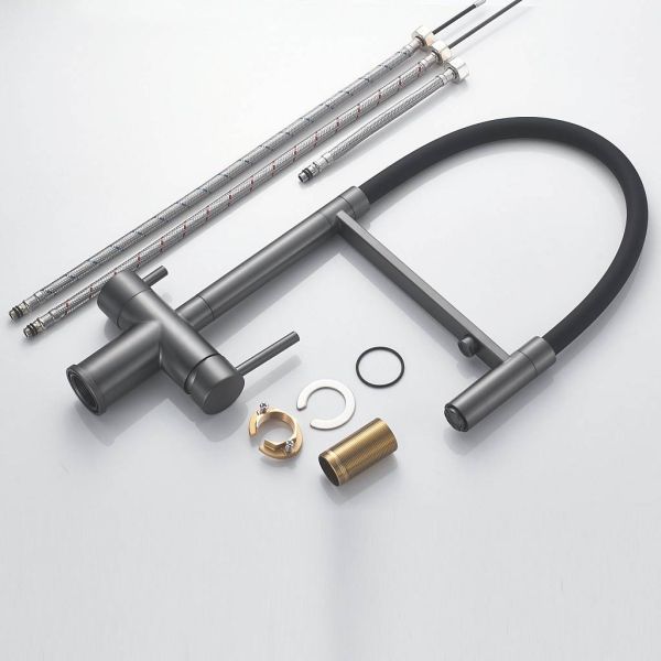 Смеситель для кухни с гибким изливом и подключением фильтра Maretti Calabria CA31RGF11, оружейная сталь
