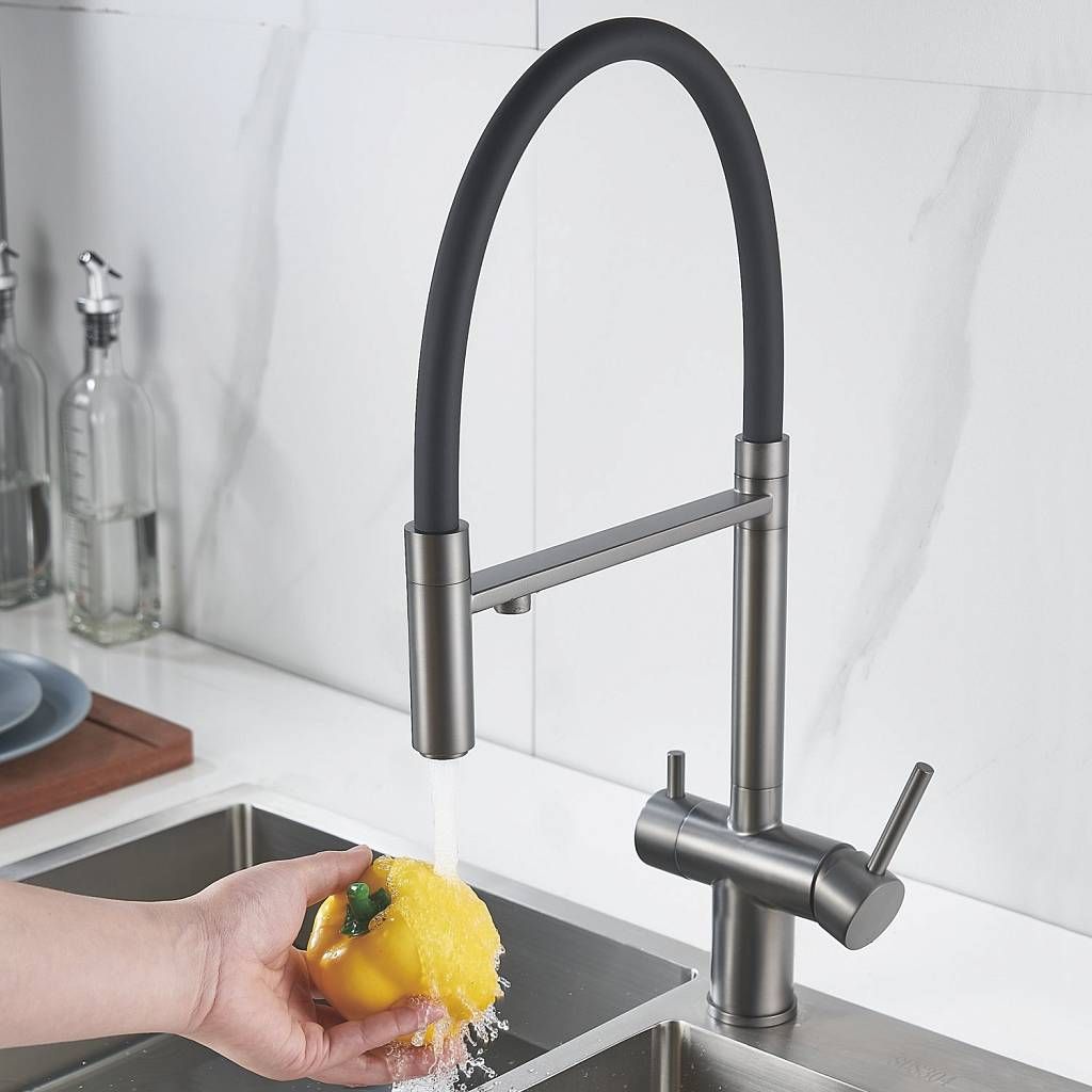 Смеситель для кухни с гибким изливом и подключением фильтра Maretti Calabria CA31RGF11, оружейная сталь купить