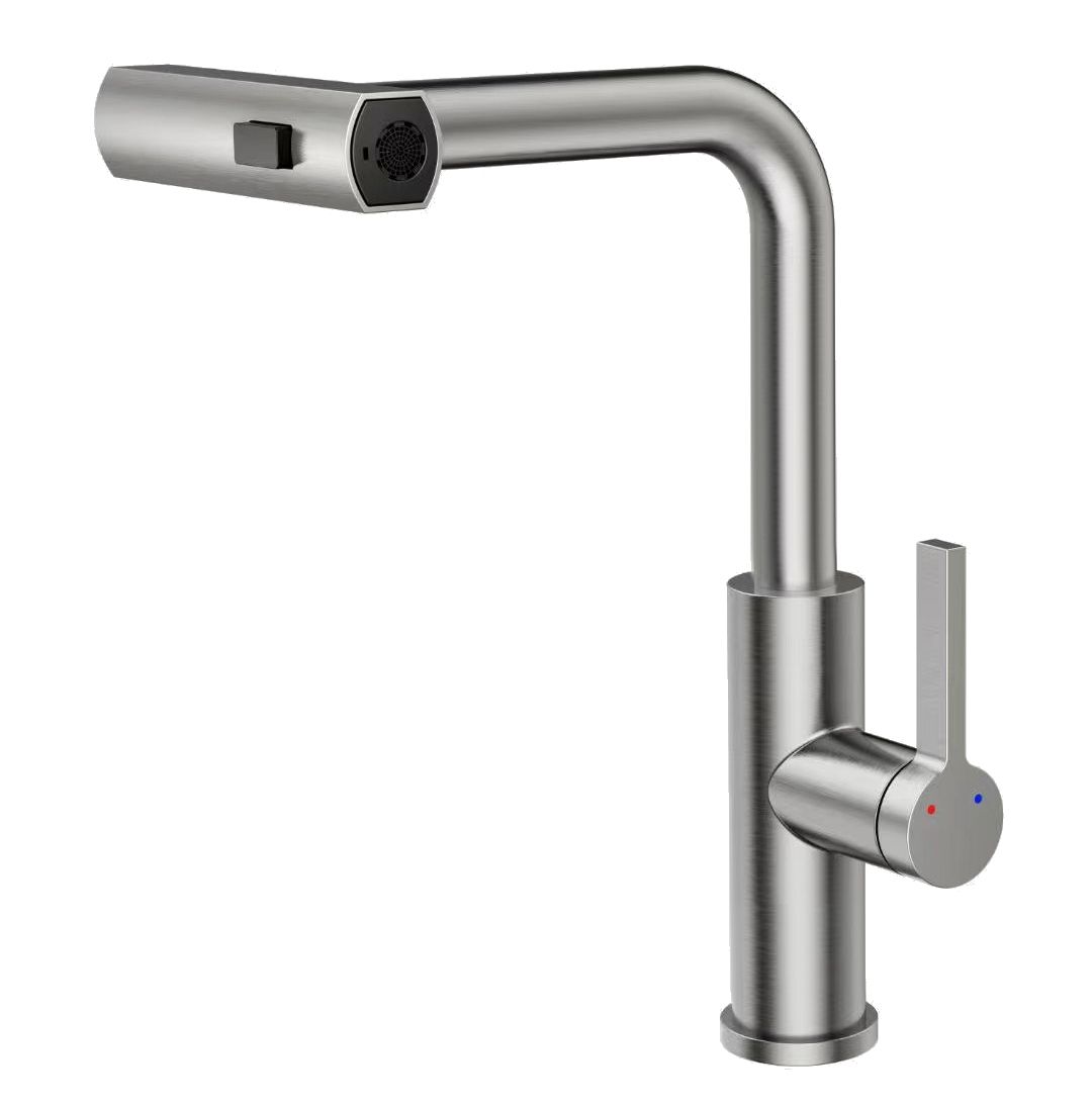 Смеситель для кухни с высоким поворотным изливом и вытяжной лейкой 3-функц. RUSH Tinos арт.TI3732-18 цвет сатин с металлической ручкой изготовлен из нержавеющей стали SUS304 и имеет рычажное управление. В смеситель установлен картридж D-35 с керамическими пластинами. Высота смесителя 398мм. Излив поворотный и вытяжной с поворотной лейкой с 3 функциями. Высота излива до аэратора 257мм. Аэратор изготовлен из пластика. В комплекте гибкая подводка с гайками 60 см - 2шт, универсальная присоединительная группа, индивидуальный пакет, паспорт, гарантийный талон.