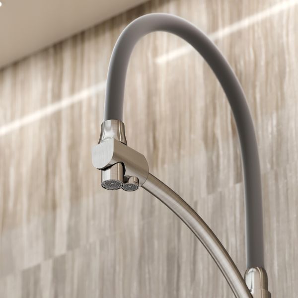 Смеситель для кухни SANCOS Eri с гибким изливом и возможностью подключения фильтра для воды, цвет брашированный никель, арт. SC4001BNС возможностью регулировки температуры водыАэратор, гибкая подводка, ключ и крепления для монтажа, ключ для обслуживания аэратора