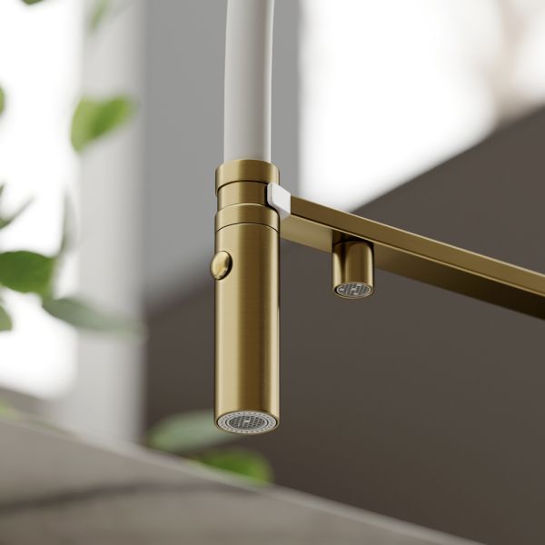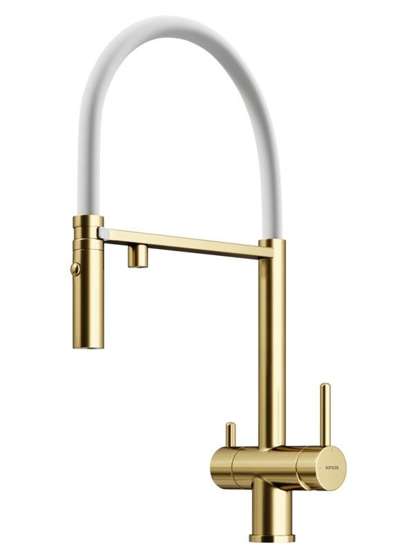 Смеситель для кухни SANCOS Imola с гибким изливом и возможностью подключения фильтра для воды, цвет брашированное золото, арт. SC4010BGФункция "Холодный старт" - при включении смесителя активируется холодной поток, для экономии горячей водыАэратор, гибкая подводка, ключ и крепления для монтажа