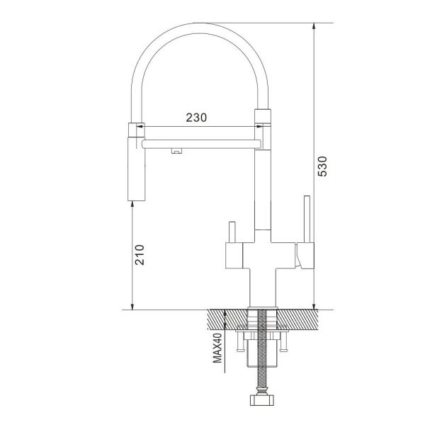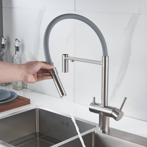 Одним из ключевых преимуществ смесителя Shevanik является возможность подключения фильтра для воды. Теперь у вас всегда будет доступ к чистой и свежей воде прямо из вашей мойки. Дополнительный излив служит не только для подачи фильтрованной воды, но и как держатель для гибкого излива, когда тот не используется, что добавляет удобства в повседневном использовании.