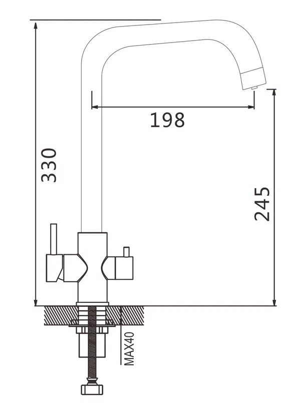 Смеситель для кухни с подключением фильтра Shevanik S228T, оружейная сталь.Управление: рычажное.Вращение излива: да.Выдвижной излив: нет.Гибкий излив: нет.Высота:33.