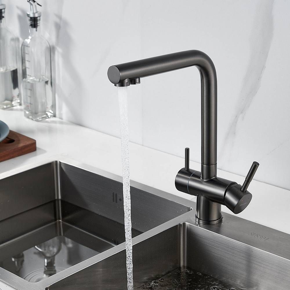 Смеситель для кухни Shevanik S468T с подключением фильтра оружейная сталь купить