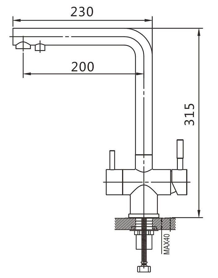 Смеситель для кухни Shevanik S468T с подключением фильтра оружейная сталь
