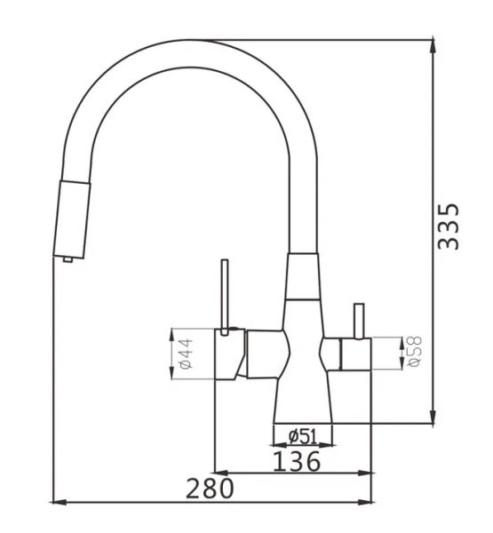 Смеситель для кухни с гибким изливом и подключением фильтра Shevanik S668H, черный.Управление: рычажное.Вращение излива: да.Выдвижной излив: нет.Гибкий излив: да.Высота:33,5.