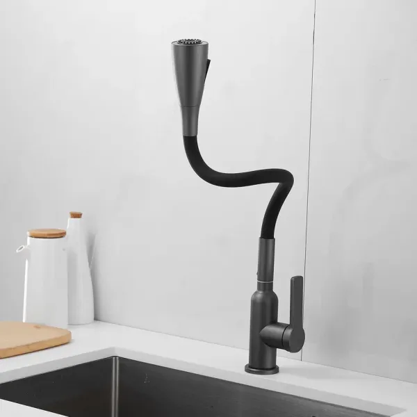 Смеситель для кухни с гибким изливом Shevanik S843T-3, оружейная сталь/черный.Управление: рычажное.Вращение излива: да.Выдвижной излив: нет.Гибкий излив: да.Высота:45.