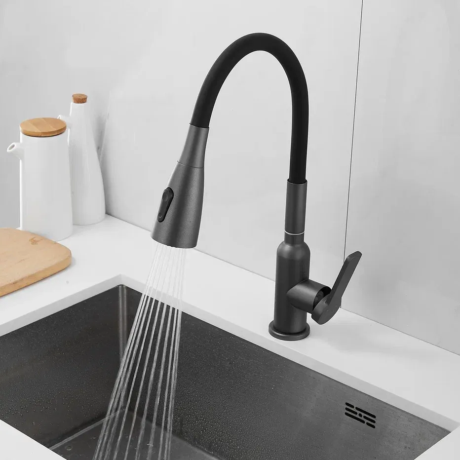 Смеситель для кухни Shevanik S843T-3 оружейная сталь/чёрный
