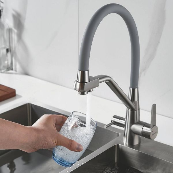 Одним из ключевых преимуществ смесителя Rose является возможность подключения фильтра для воды. Теперь у вас всегда будет доступ к чистой и свежей воде прямо из вашей мойки. Дополнительный излив служит не только для подачи фильтрованной воды, но и как держатель для гибкого излива, когда тот не используется, что добавляет удобства в повседневном использовании.