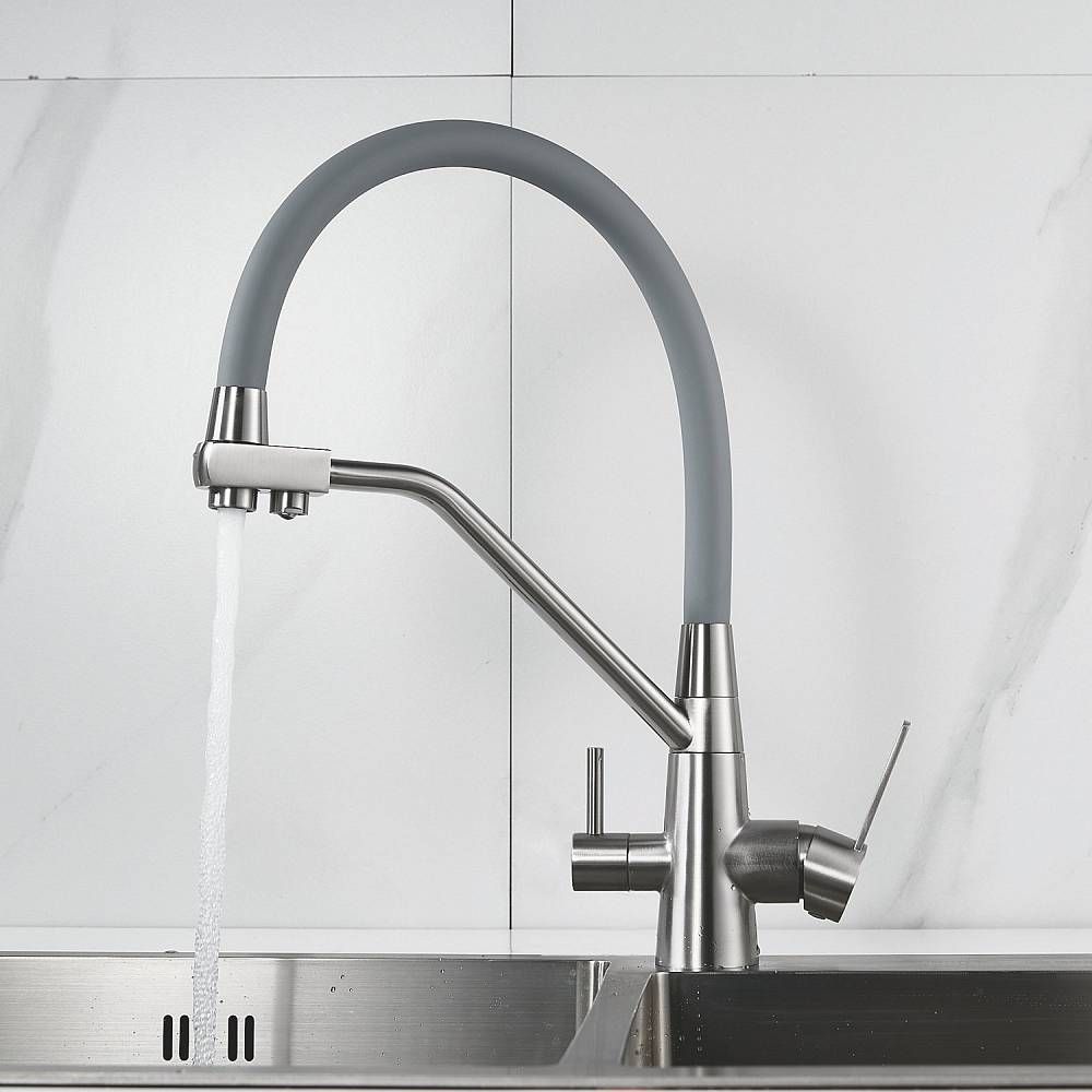Смеситель для кухни Shevanik S968L с подключением фильтра сатин купить