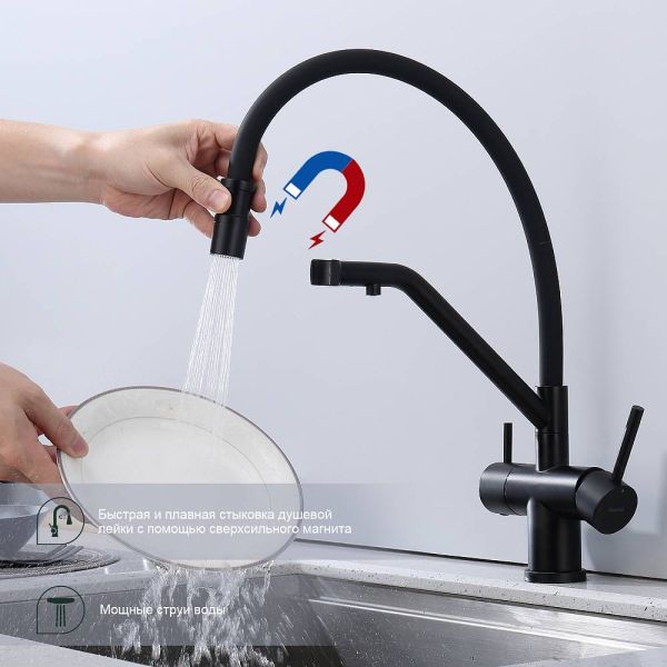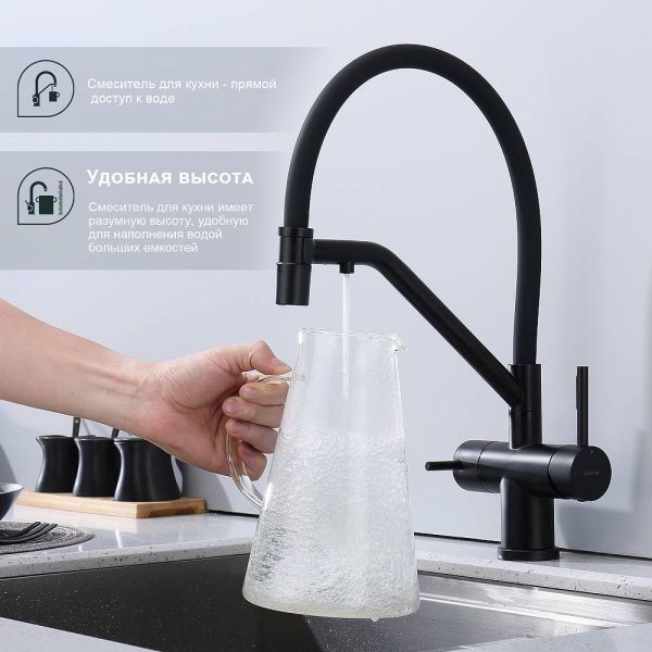 Смеситель для кухни Splenka S70.62.06 с подключением фильтра чёрный