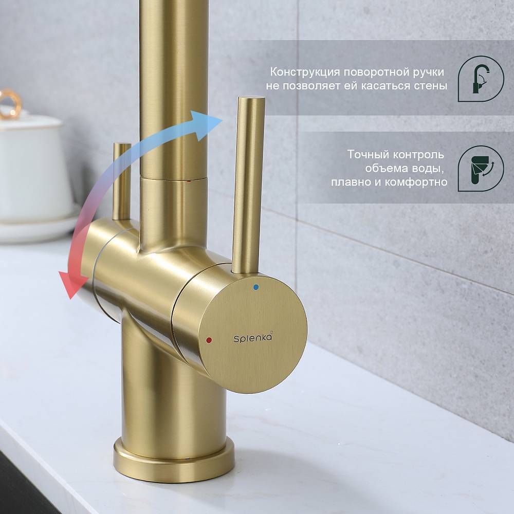 Смеситель для кухни Splenka S70.63.03 с подключением фильтра золотой сатин