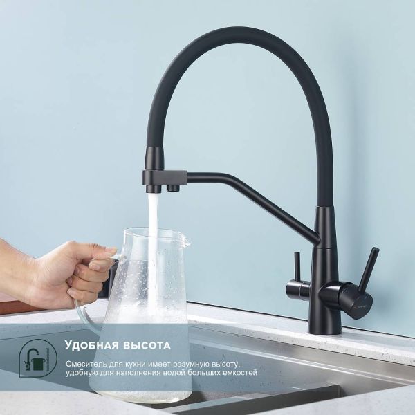 Смеситель для кухни Splenka S71.62.06 с подключением фильтра чёрный