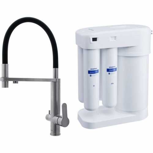 Смеситель для кухни Swedbe Selene Plus 8440M в комплекте с фильтром Аквафор Морион нержавеющая сталь/чёрный купить