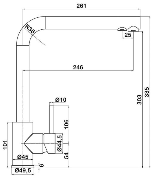 • Высота смесителя: