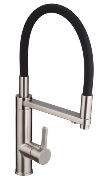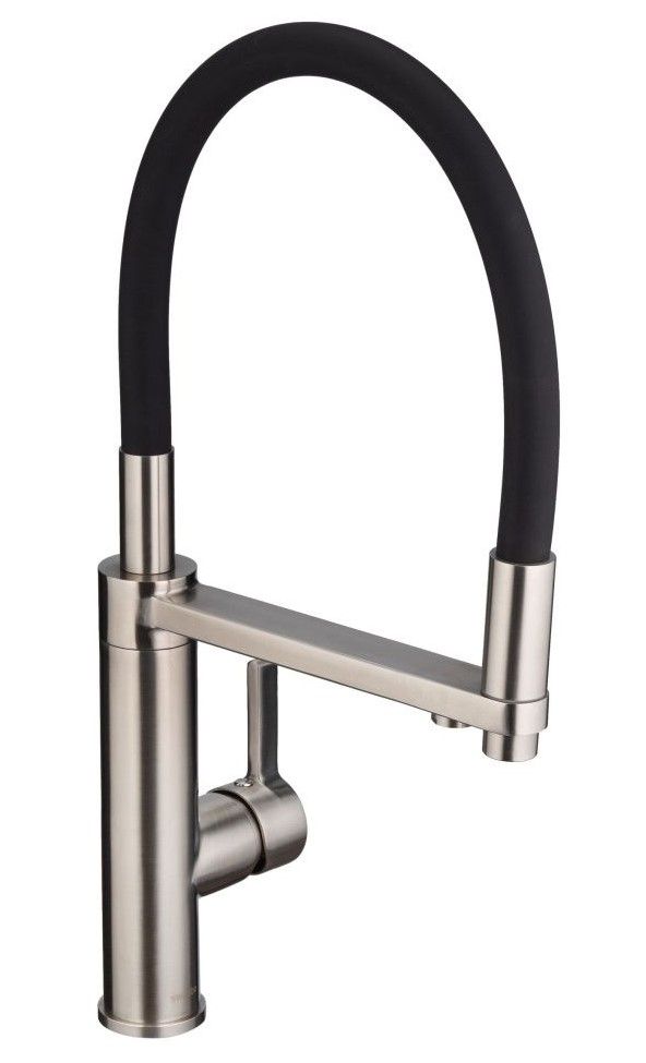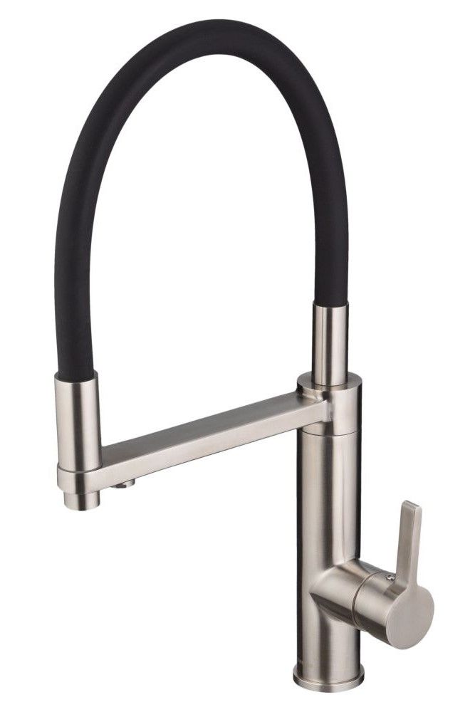 Кухонный смеситель для фильтра с гибким изливом 2 в 1Излив с поворотом 180 градусов.Изготовлен полностью из пищевой нержавеющей стали (SUS 304).Изолированный отдельный канал для фильтрованной воды.Керамический картридж Sedal. Аэратор Neoperl.Гибкая подводка SoftPEX.Управление всеми режимами одной рукояткой.Цвет излива: черный