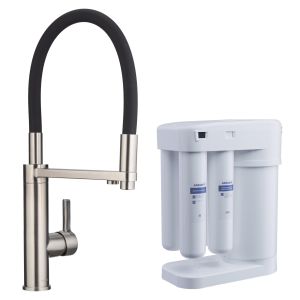 Смеситель для кухни Swedbe Selene Plus 8640M в комплекте с фильтром Аквафор Морион нержавеющая сталь/чёрный купить