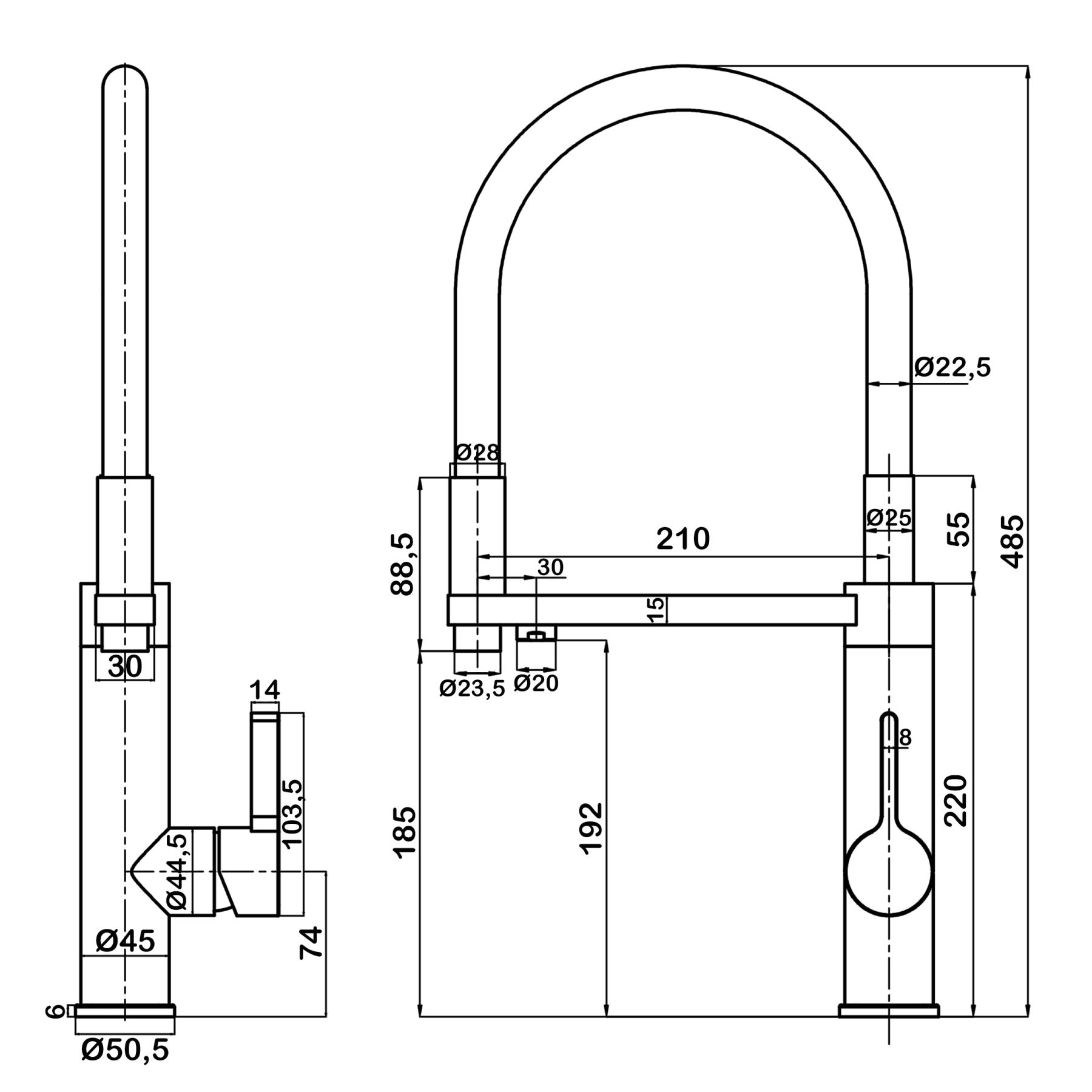 • Высота смесителя: