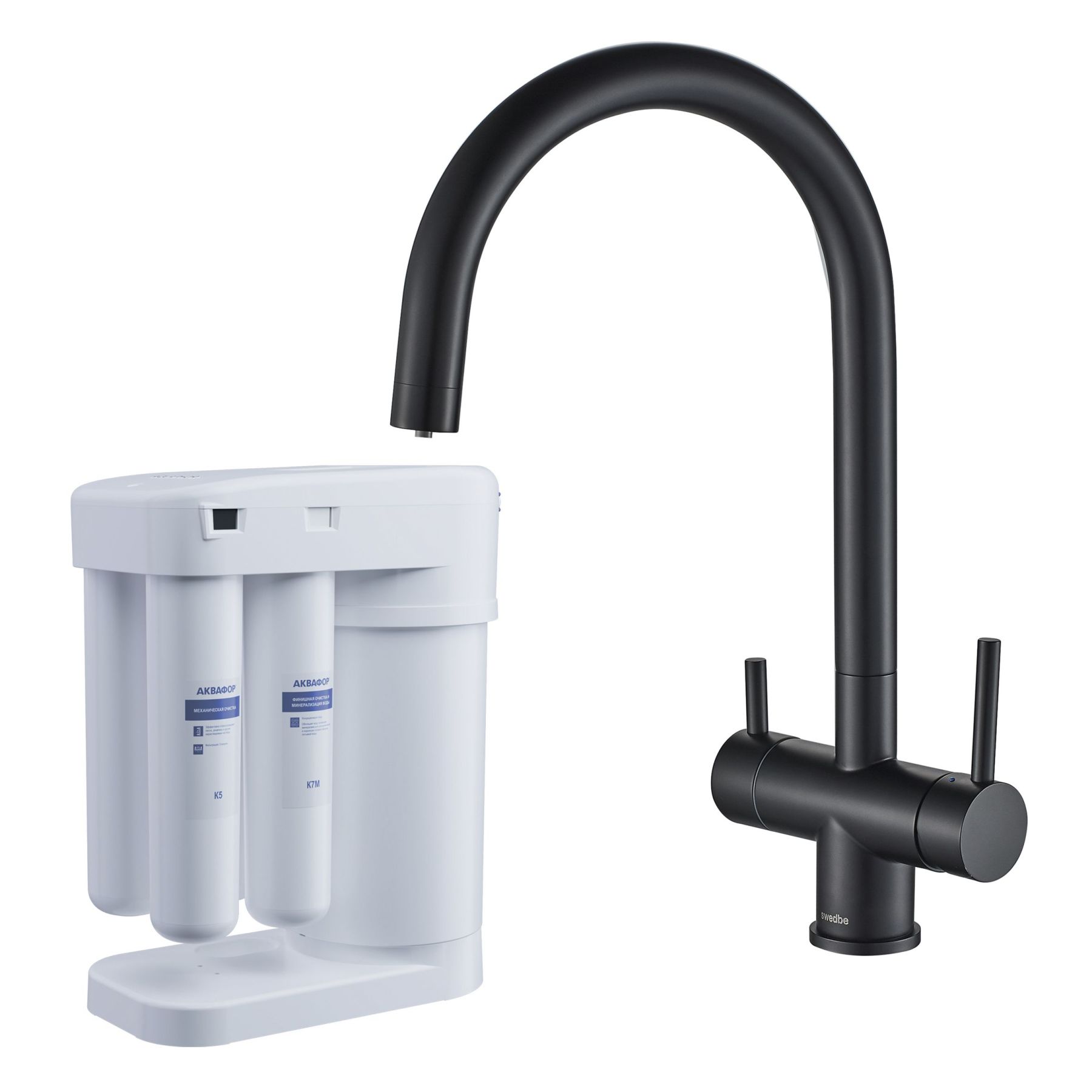 Смеситель для кухни Swedbe Selene Plus K8042BM в комплекте с фильтром Аквафор Морион чёрный купить
