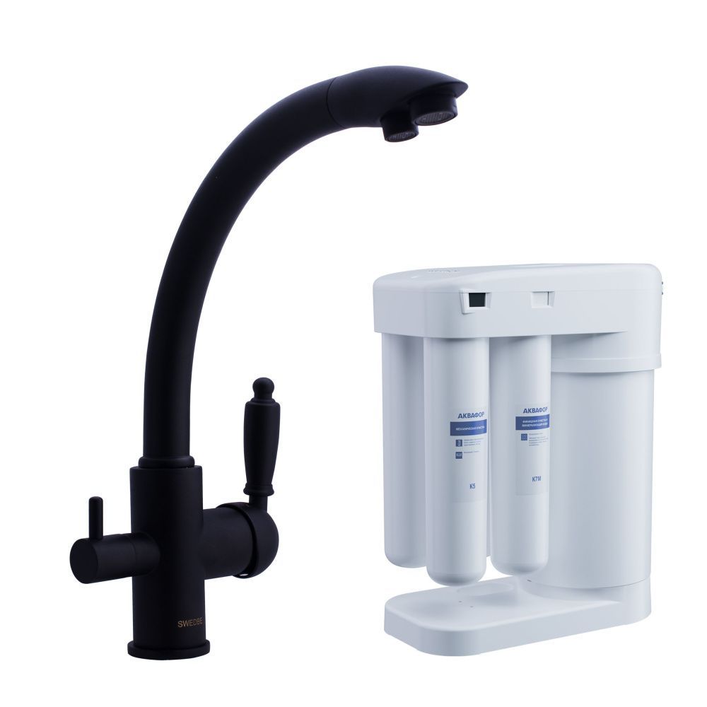 Смеситель для кухни Swedbe Selene Plus K8045M в комплекте с фильтром Аквафор Морион чёрный матовый купить