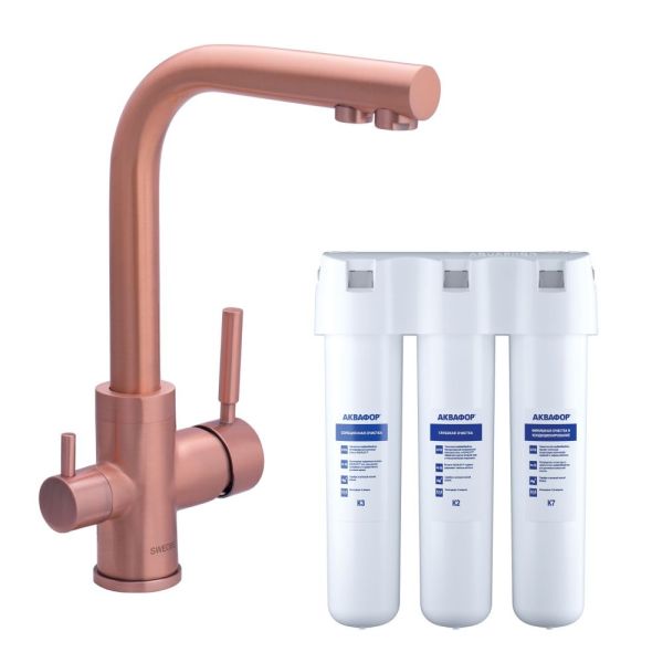 Смеситель для кухни Swedbe Selene Plus K8148K в комплекте с фильтром Аквафор Кристалл медь купить