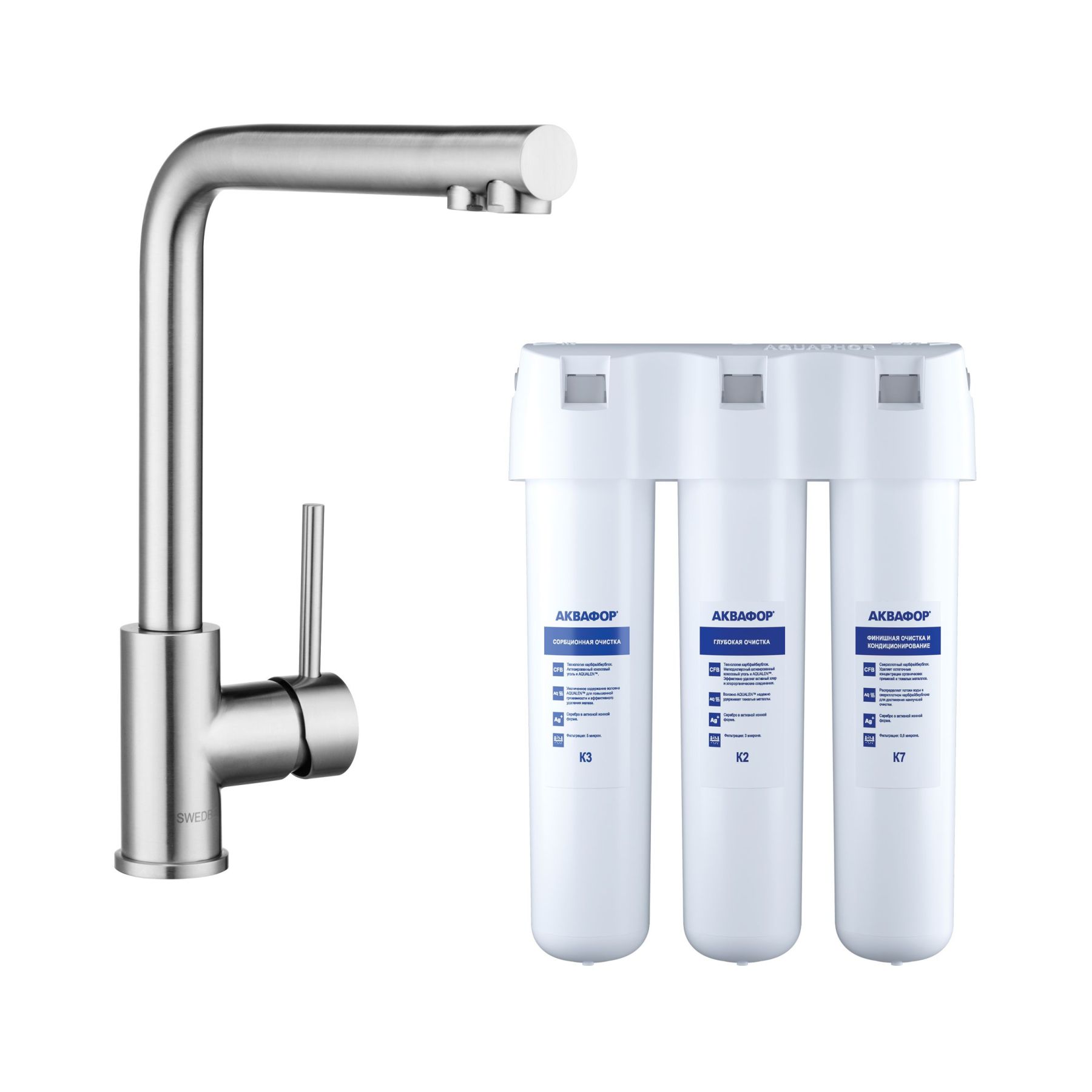 Смеситель для кухни Swedbe Selene Plus K8540K в комплекте с фильтром Аквафор Кристалл нержавеющая сталь купить