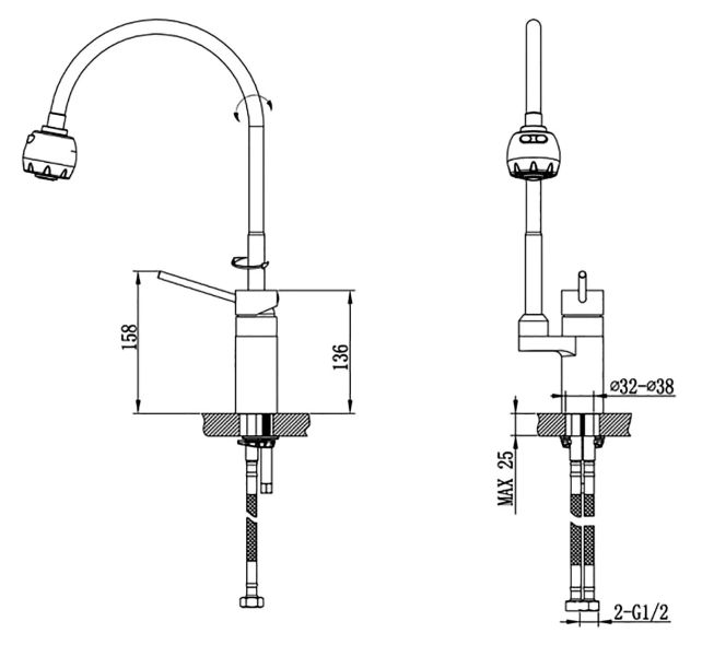 • Гибкий излив: