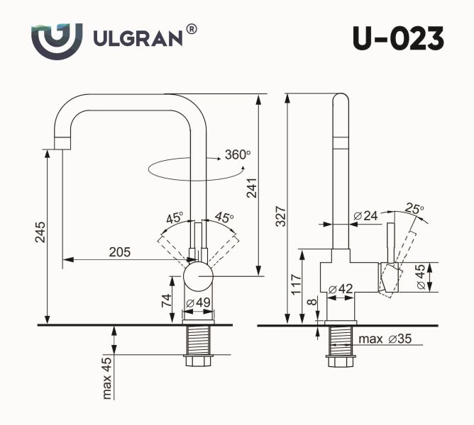 Смеситель ULGRAN U-023 – это удобный современный кухонный смеситель с высоким поворотным изливом. Материал корпуса выполнен из высококачественной нержавеющей стали марки AISI 304, а окрашивание под «искусственный камень», в цвет мойки ULGRAN выполняется на собственном производстве, что позволяет идеально попасть в фирменный цвет ULGRAN. В качестве керамического картриджа используется известный бренд Wanhai диаметром 40 мм с высокой пропускной способностью в 500 тысяч циклов «открывания-закрывания». На подвижные части картриджа Wanhai нанесена специальная невымываемая силиконовая смазка, а керамические пластины изготовлены из 96% оксида алюминия, что, в сочетании с высоким качеством шлифовки обеспечивает долговечность, надежность, плавность хода рукоятки. Смеситель оборудован съемным пластиковым аэратором для экономии воды и поворотным изливом на 360 градусов. В комплектацию входят: керамический картридж Wanhai, гибкая подводка 450 мм, комплект крепежных элементов, технический паспорт и гарантийный талон. Заводская гарантия составляет 3 года на материал корпуса, 1 год на комплектующие к смесителю и 1 год на материал покрытия.