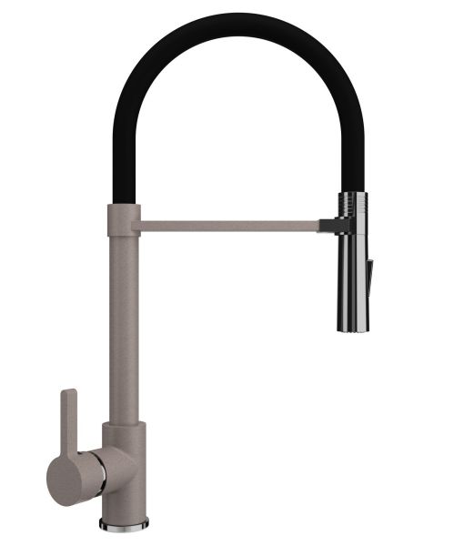 Смеситель ULGRAN U-024 – это стильный и современный кухонный смеситель с высоким гибким изливом черного цвета. Материал корпуса выполнен из высококачественной латуни, сверху корпус смесителя имеет специальное черное матовое покрытие.