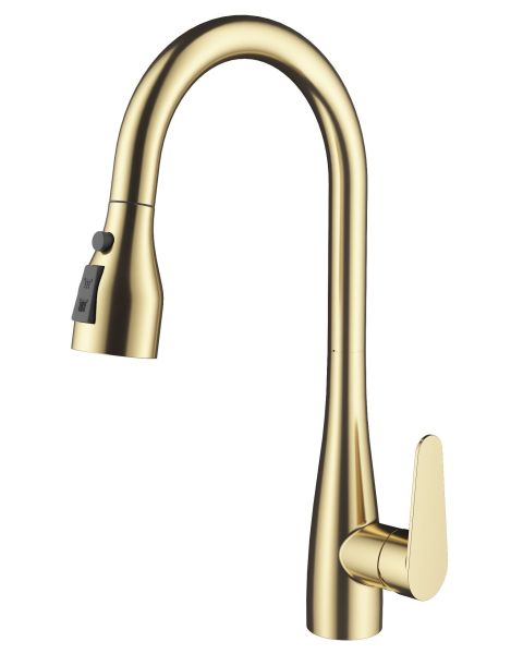 Смеситель для кухни Wonzon & Woghand WW-121E201B-BG с выдвижным изливом брашированное золото купить